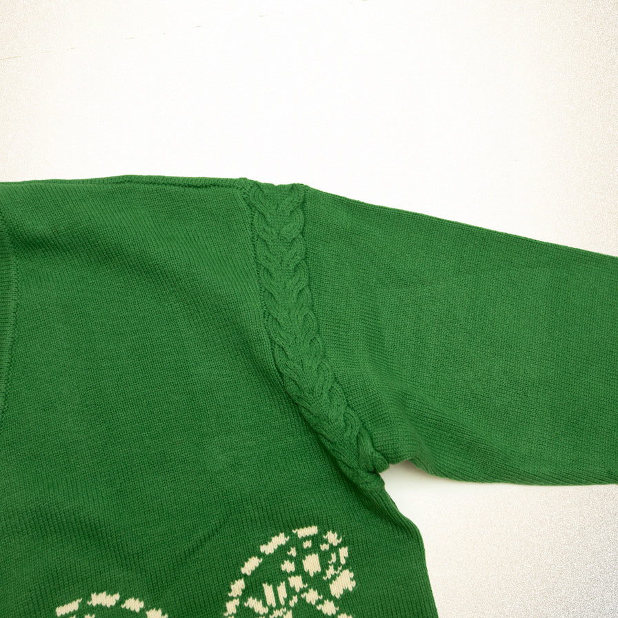 Inspired by traditional South Asian textile patterns, our Paisley Knit Cardigan features a contrast cream jacquard motif against rich green cotton knit. It’s finished with a V-neckline and wooden buttons, while the sleeves are accented with cable-knit detailing for added texture.