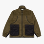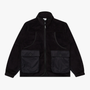 The Summit Fleece in Black. A zip-through jacket made from 100% recycled polyester with tonal nylon panelling. Featuring two large cargo pockets, herringbone tape binding, a stand collar and elasticated cuffs. Detailed with a branded zip pull.