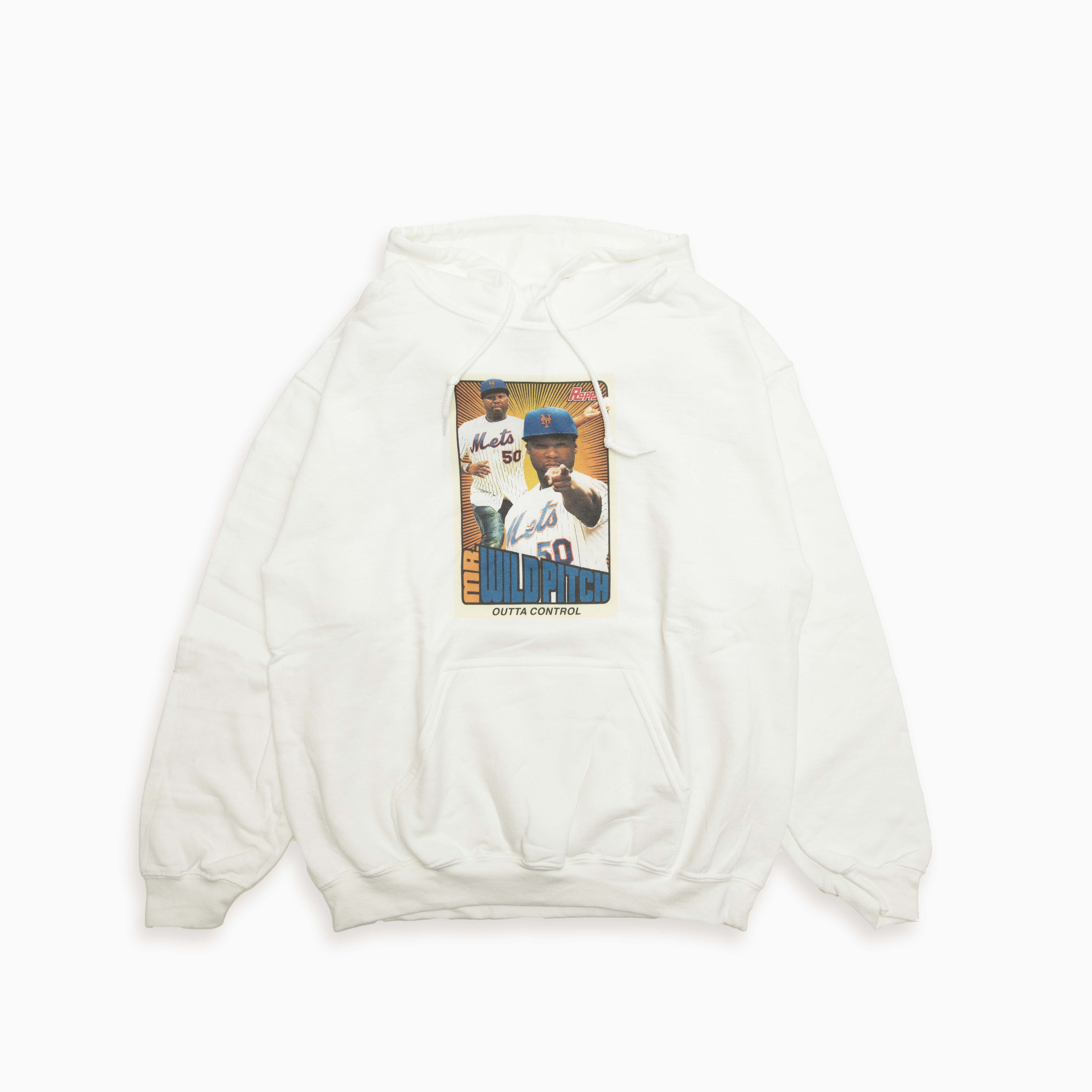 始球式でマウントに立ったものの、明後日の方向に大爆投した50CentをモチーフにしたTシャツです。