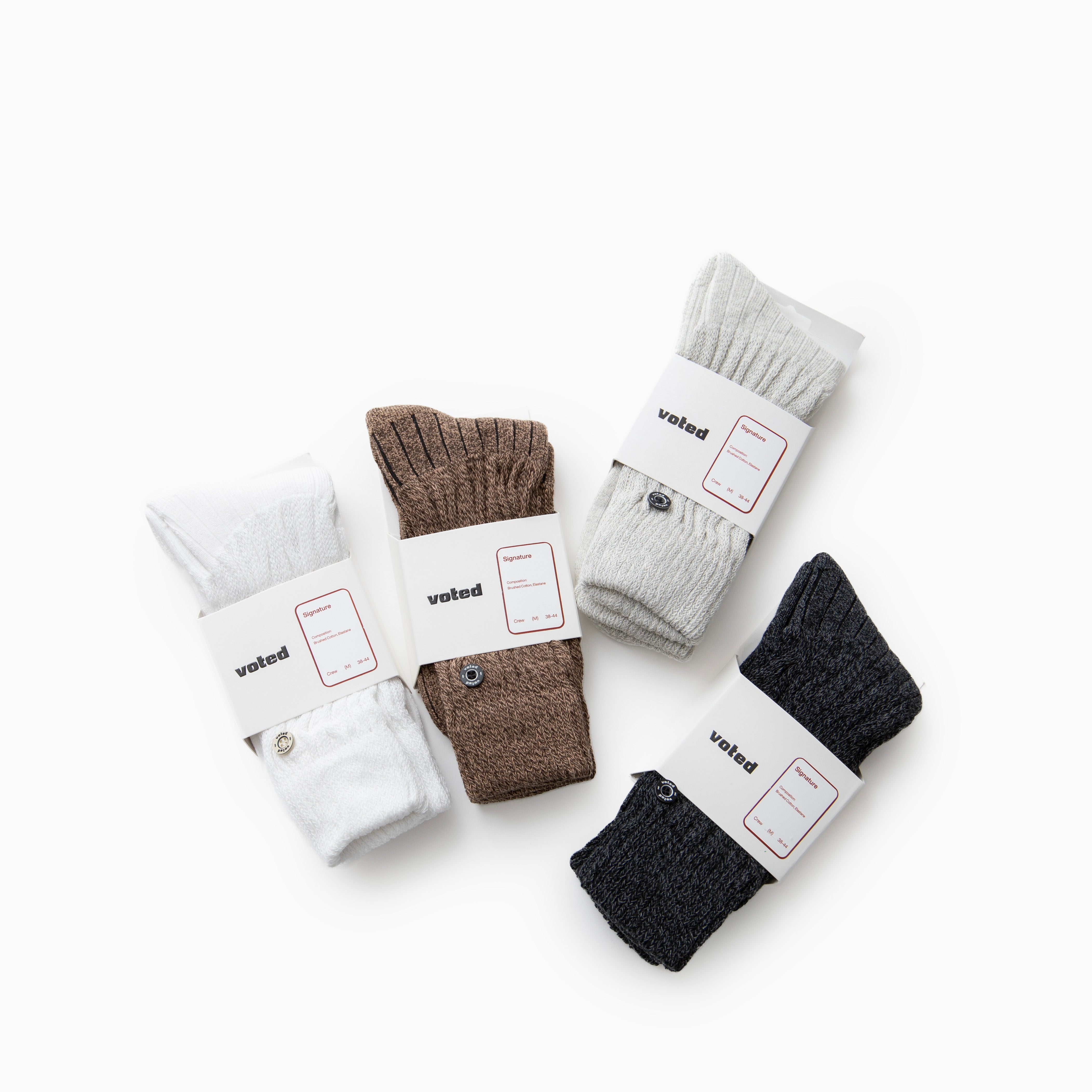 Manufactured using the innovative oxygen-injected process, the cotton threads are injected with air through the needle during the knitting process, giving extra room in between each knit and giving a cloud-like feeling to the socks. Equipped with the ability to change according to your styling, explore the different ways you can wear the Yutori socks.